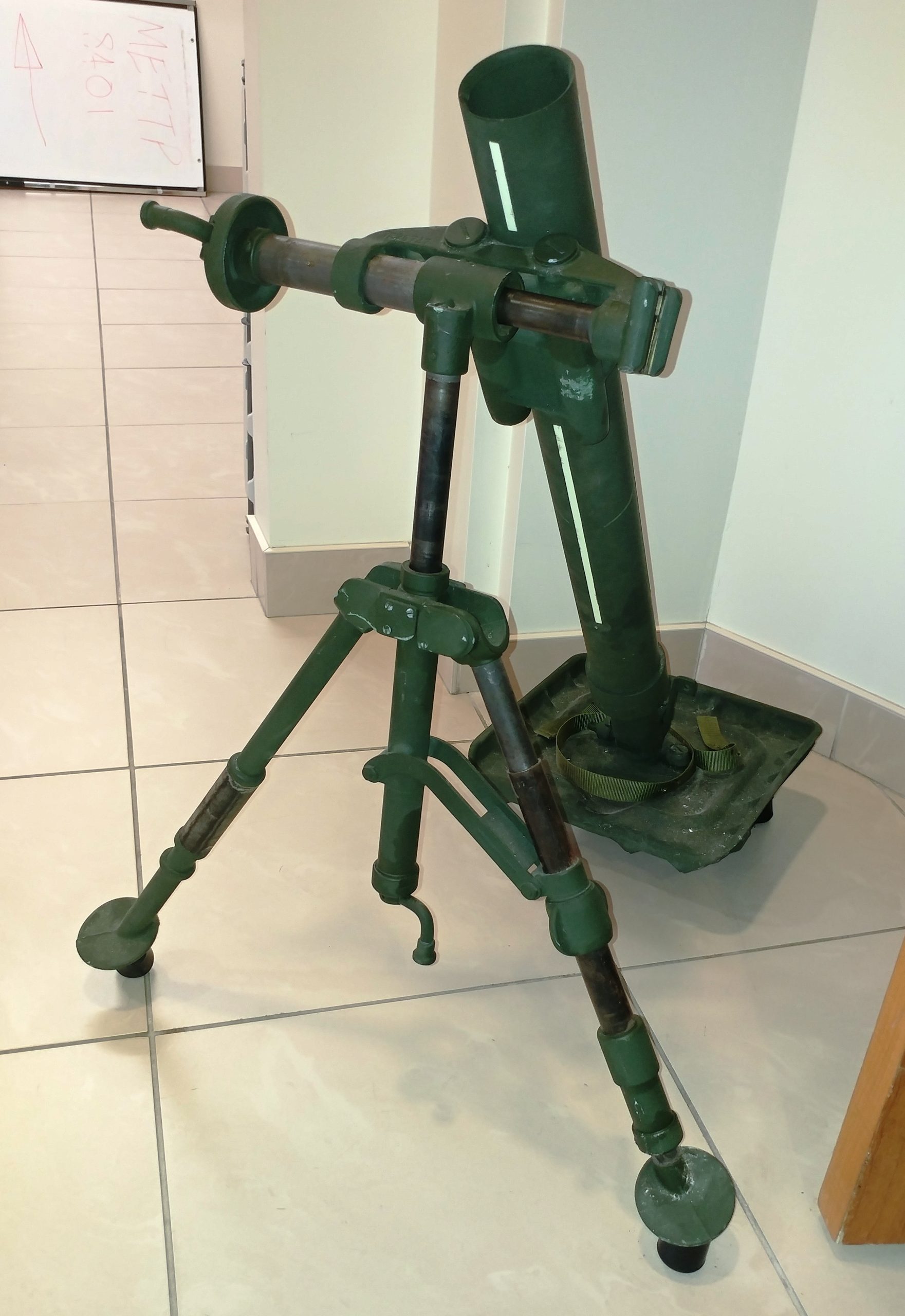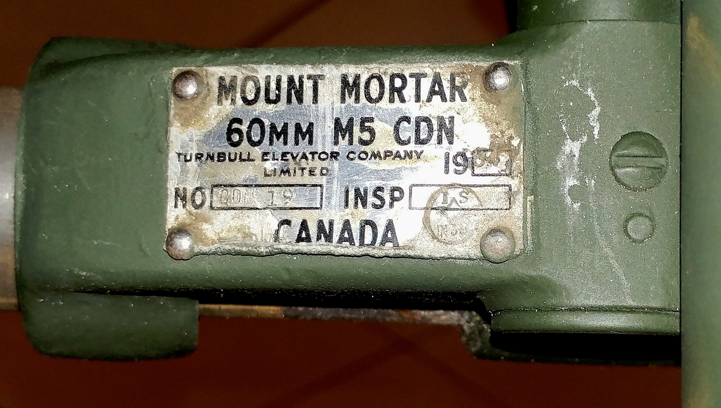 60-mm M5 CDN Mortar, No. 19, 1954. Standing inside the building at the entrance to the Mess.