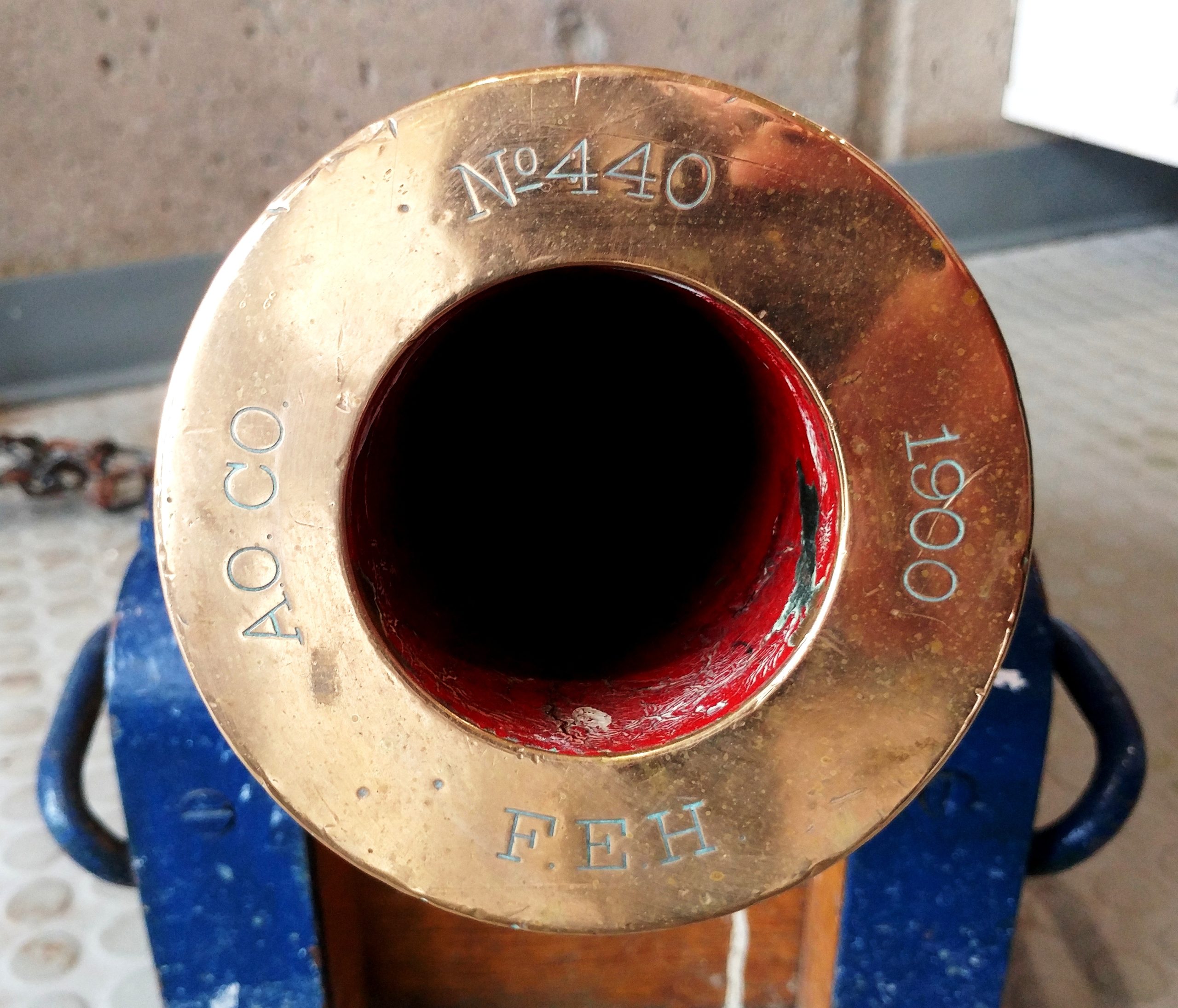 Bronze Lyle Smoothbore Muzzleloading Gun (2.5-inch bore), AO CO, No. 440, 190, FEH on the muzzle, blank on the left trunnion, US LSS on the right trunnion.