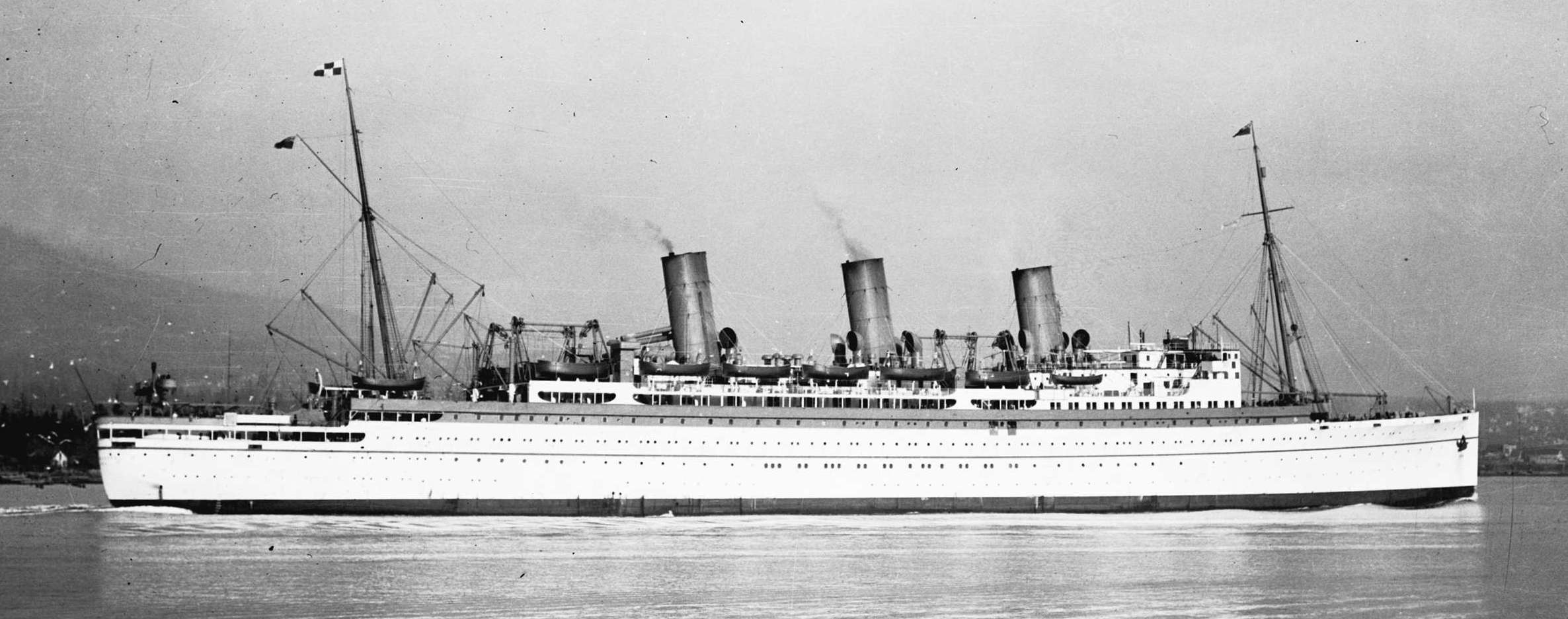RMS Empress of Canada was an ocean liner built in 1920 for the Canadian Pacific Steamships (CP) by Fairfield Shipbuilding & Engineering Company at Govan on the Clyde in Scotland.  She was 653 feet long.  This ship was the first of two CP vessels to be named Empress of Canada, and regularly traversed the trans-Pacific route between the west coast of Canada and the Far East until 1939.