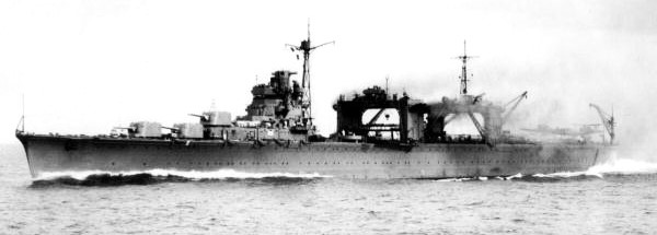 Seaplane tender Nisshin (1942–1943), 11,499 tonnes. Also a midget submarine carrier and minelayer. Nisshin was built at Kure Naval Arsenal as part of the (1937), she was originally planned as a minelayer but ultimately converted to a hybrid seaplane carrier/minelayer design, albeit the optional 700 mines reduced her seaplane complement from 20 to 12. Her seaplane operations were also hindered by the reduced number of catapults, 2 instead of 4 like in the Chitose class and Mizuho. Her armament was downgraded to three 14 cm/50 double mounts, but her diesel propulsion system was greatly enhanced compared to Mizuho, giving her more than twice the horse powers and allowing for a maximum speed of 28 knots. While she was launched in 1939 it took three more years before her formal completion because it was decided to modify her in order to carry 12 Type A midget submarines, like in the case of the mines this configuration halved her seaplane complement.Nisshin fst combat deployment was the Battle of Midway, where she was supposed to deploy her Type A midget submarines, together with Chiyoda, in order to reinforce the landing forces, but this never came to be. From 3 October 1942 she started doing runs, her high speed, large range and cranes capable of unloading heavy equipment like artillery pieces and tanks made her very valuable for this kind of missions (her half-sister Chitose was also part of the Tokyo Express for the same reasons). It was during one of such runs that Nisshin was sunk by American aircraft in the Bougainville Strait on 22 July 1943; she was transporting troops, tanks, artillery pieces, food and fuel for the troops fighting the Americans at Buin (Shortland islands) but her anchorage position was discovered by the Americans thanks to decrypted communications and an elaborately planned ambush was prepared for her. The first attack by B-17 (13:45) was successfully evaded with Nisshin reaching up to 34 knots during her manoeuvring, but the second wave (13:53) of dive bombers managed to hit her three times, on her second turret, on the forward end of the aircraft deck starting a fire and most importantly inside her hangar deck that was opened at the time in preparation of off-loading operations. As result of these hits her electric power was cut, speed more than halved and her rudder was jammed, still some countermeasures were taken in time and the rudder was recovered. Just after some more minutes the third wave of American aircrafts hit her again twice (13:59) striking the port sides amidships, tearing a large hole in the deck and blowing through the bottom. Nisshin kept moving but she started listing visibly to starboard and settling rapidly by the bow, one last 6th bomb hit her starboard side amidships and accelerated her listing. Nisshin’s gunners showed remarkable courage, manning their guns to the very end, until they were washed away from their positions. At 14:05 Nisshin disappeared under the sea, Captain Ito, his XO Tanaka Eichu and Chief Engineer Cdr. Terada Torao went down with her, only seven officers and eighty men of her crew escaped and despite the best efforts of Nisshin’s crew just 91 soldiers out of 630 on board survived, in total 1085 lives were lost; her accompanying destroyers already loaded with evacuated soldiers couldn’t spare more than two hours in search of survivors. (Wikipedia)