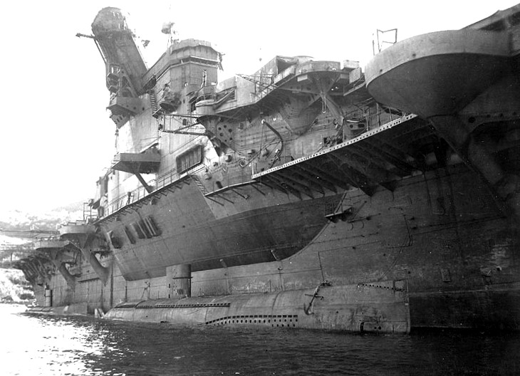 Submarine Ro-500. 1,120 tonnes. This was a German Kriegsmarine submarine under the name U-511, until it was given to Japan on 16 September 1943