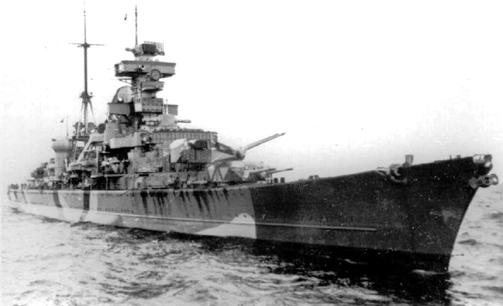 Disappointed by the failure to sink merchant ships in that battle, Adolf Hitler ordered the majority of the surface warships scrapped, though Admiral Karl Dönitz was able to persuade Hitler to retain the surface fleet. As a result, Admiral Hipper was returned to Germany and decommissioned for repairs. The ship was never restored to operational status, however, and on 3 May 1945, Royal Air Force bombers severely damaged her while she was in Kiel, Germany. Her crew scuttled the ship at her moorings, and in July 1945, she was raised and towed to Heikendorfer Bay. She was ultimately broken up for scrap in 1948–1952; her bell is currently on display at the Laboe Naval Memorial near Kiel. (Wikipedia)
