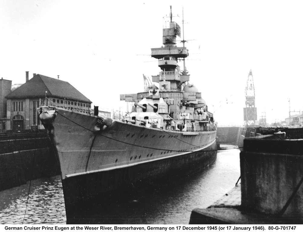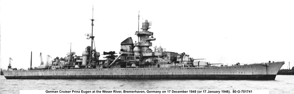 Kriegsmarine Heavy Cruiser Prinz Eugen, Boston Harbor, Feb 1946.