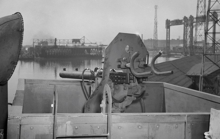 Twin Vickers .50 cal Machine Guns mounted on an RCN Minesweeper, ca 1945.
