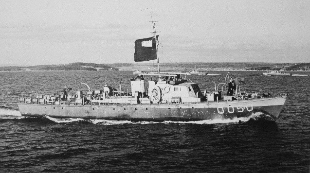 ML Q050 Fairmile Type B Motor Launch. The large black flag indicates Q050 is conducting radio asdic contact training during anti-submarine exercises in May 1943.