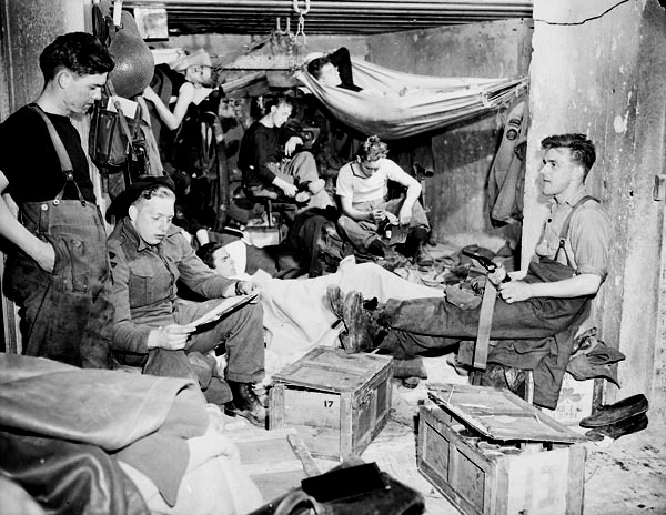 Royal Canadian Navy Beach Commandos, “W”, in their quarters in the Juno sector of the Normandy beachhead, France, 20 July 1944.