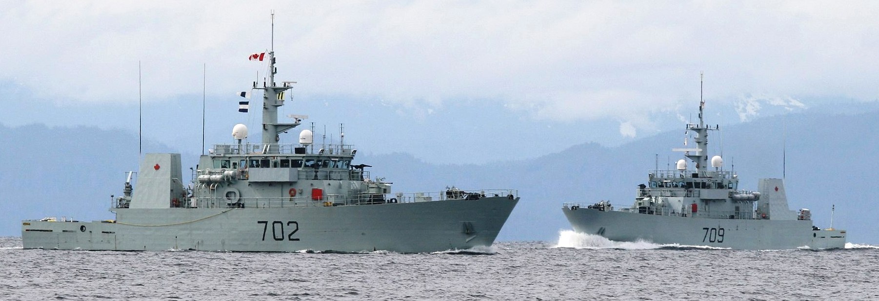 HMCS Nanaimo MM 702 and HMCS Saskatoon MM 709, off the coast of Vancouver Island, British Columbia, in 2007.