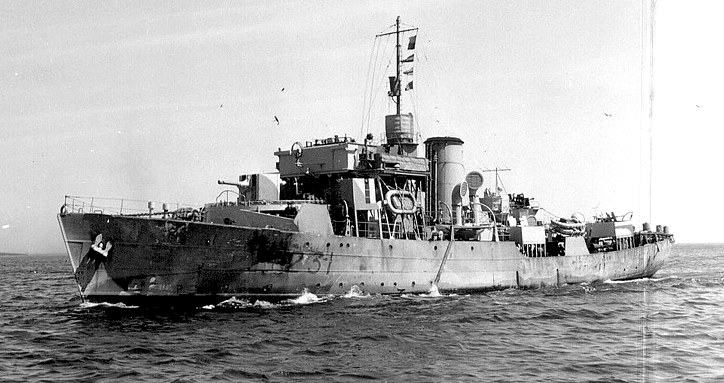 In October 1942, HMCS Camrose was allocated to duties concerned with the invasion of North Africa. She left Halifax on 20 October for the United Kingdom, and for the next five months escorted convoys between Britain and the Mediterranean. In April 1943 she proceeded to Pictou, Nova Scotia, for a refit lasting five and a half months, including forecastle extension, after which she worked up in Bermuda and was assigned to Escort Group 6. She left St. John’s, Newfoundland, early in December for Londonderry, where she was based for the next four months in support of convoys, especially to and from Freetown, Sierra Leone and Gibraltar. While with combined convoys OS.64/KMS.38, she shared with the British destroyer HMS Bayntun the sinking of U-757 in the North Atlantic on 8 January 1944. In May she joined Western Approaches Command, Greenock, Scotland for invasion duties, escorting convoys to staging ports, and to and from Normandy beaches. She left the United Kingdom on 2 September for another refit at Pictou, followed by workups in Bermuda, returning in January 1945 to become a member of Escort Group 41, Plymouth, England. She served with this group until Victory-in-Europe Day, afterward participating in the re-occupation of St. Helier in the Channel Islands. HMCS Camrose left Greenock, Scotland, for home early in June 1945 and was paid off at Sydney on 22 July. She was broken up at Hamilton, Ontario in 1947.