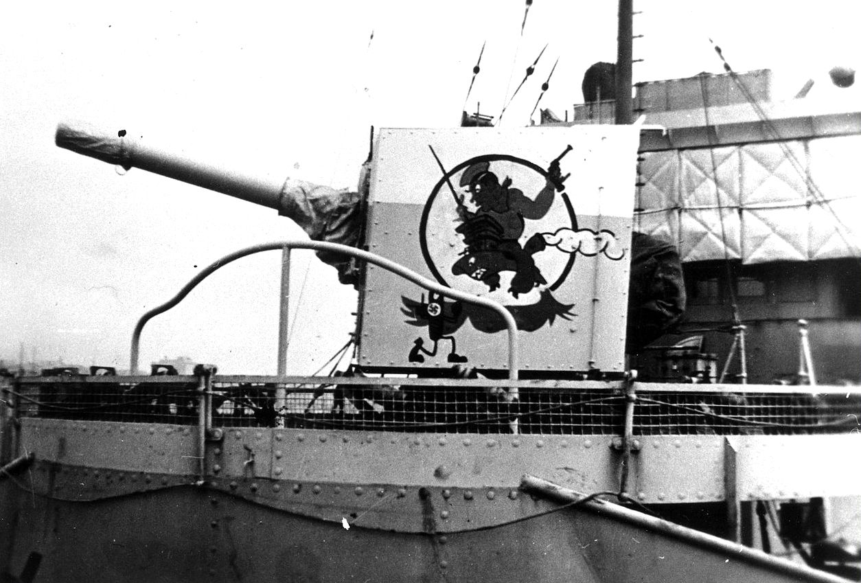 HMCS Calgary (K231) Flower class Corvette, gun shield artwork.