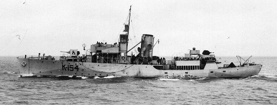 HMCS Camrose (K154) Flower class Corvette, November 1943. Commissioned at Sorel, Quebec, on 30 June 1941, HMCS Camrose arrived at Halifax, Nova Scotia, on 6 June. She was assigned to Halifax Force after working up, but in October joined Newfoundland Command, leaving St. John’s, Newfoundland, on 8 October for Iceland with convoy SC.48. She was employed as ocean escort to and from Iceland until February 1942, when she commenced a major refit at Lunenburg, Nova Scotia. Upon completion in May she resumed her mid-ocean escort duties for one round trip to Londonderry, Northern Ireland, but was assigned in June to Western Local Escort Force.
