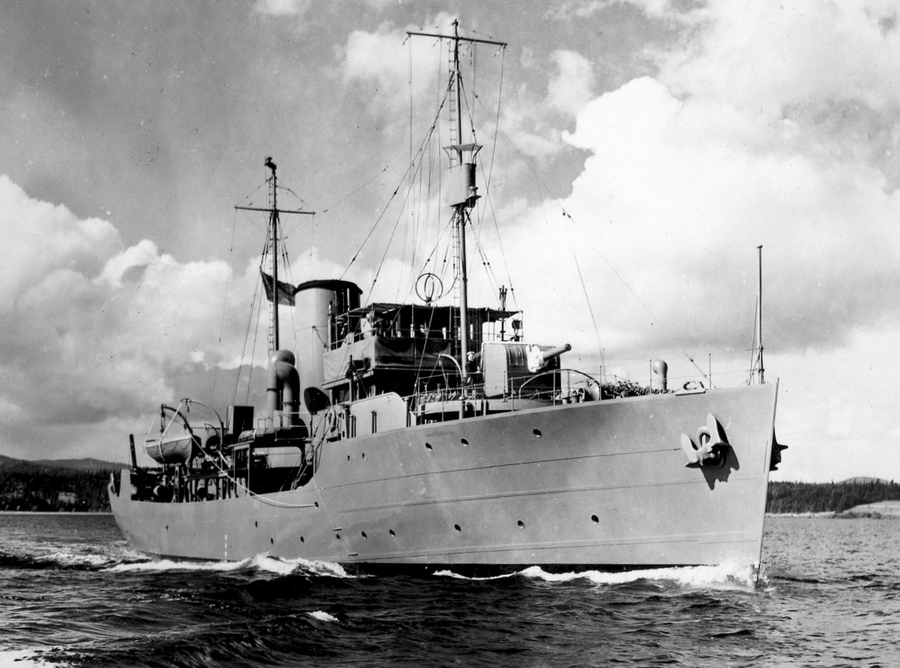 HMCS Cobalt (K124) Flower class Corvette. Hvalfjord, West-Iceland. The snow in the mountains shows that this was during spring – early summer. Most likely May or June 1941.