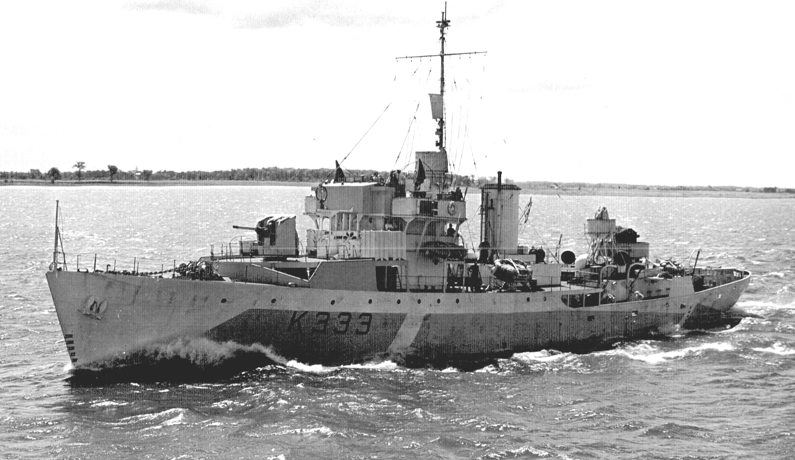 HMCS Dauphin (K157) Flower class Corvette. Built by Canadian Vickers Ltd., Montreal, she was commissioned at Montreal on 17 May 1941 and arrived at Halifax on 24 May 1941. She joined Sydney Force late in Jun 1941 and in Sep 1941 transferred to Newfoundland Command. She left Sydney on 05 Sep 1941 to join her maiden convoy, SC.43, continuing on to the UK for further workups at Tobermory and returning to mid-ocean service in mid-Oct 1941. HMCS Dauphin was almost continuously employed as an ocean escort until Aug 1944, after Dec 1942 as a member of EG A-3, (re-designated C-5 in Jun 1943). She escorted three particularly strenuous convoys: SC.100 (Sep 1942), On.166 (Feb 1943), and SC.121 (Mar 1943). In the course of a major refit at Pictou from Apr to Sep 1943, her fo’c’s’le was lengthened. Dauphin left Londonderry for the last time on 11 Aug 1944, underwent refit at Liverpool, NS, then proceeded to Bermuda to work up. Returning in Jan 1945, she was assigned to EG W-7, Western Escort Force, for the balance of the war. She was paid off at Sorel on 20 Jun 1945, and sold for conversion to a merchant ship at the yards of Steel and Engine Products, Liverpool, NS. Named Dundas Kent, just as she neared completion she caught fire and burned at the pier. After being repaired she entered service in 1949 as the Honduran Cortes. She became the Ecuadorian flagged vessel San Antonio in 1955. She was still listed in Lloyd’s Register in 1977-78.