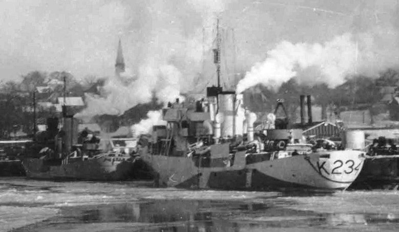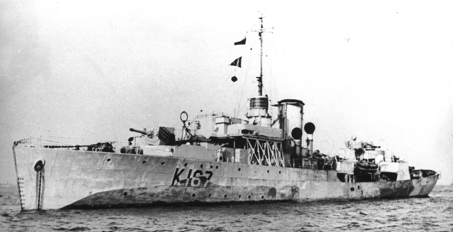 RCN Flower class Corvettes: HMCS Drumheller (K167), HMCS Dundas (K229), HMCS Dunvegan (K177), HMCS Regina (K234)