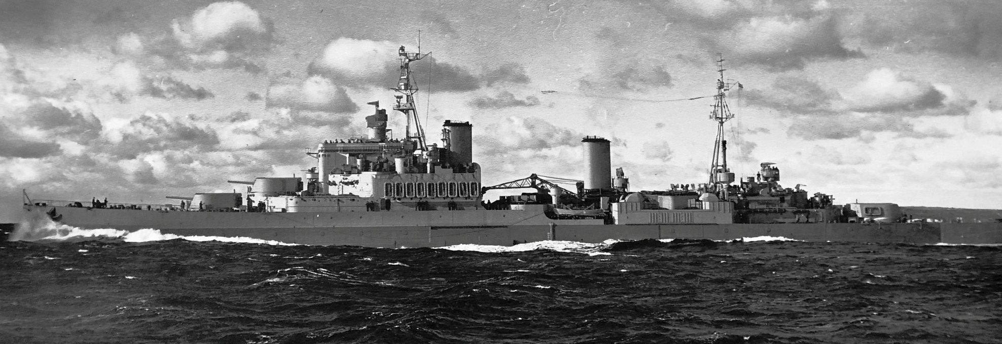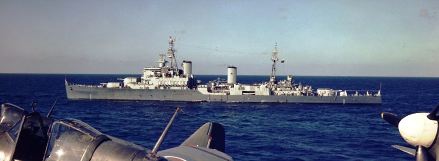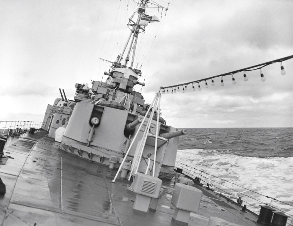 HMCS Uganda (C66), while serving with the British Pacific Fleet, 1945.