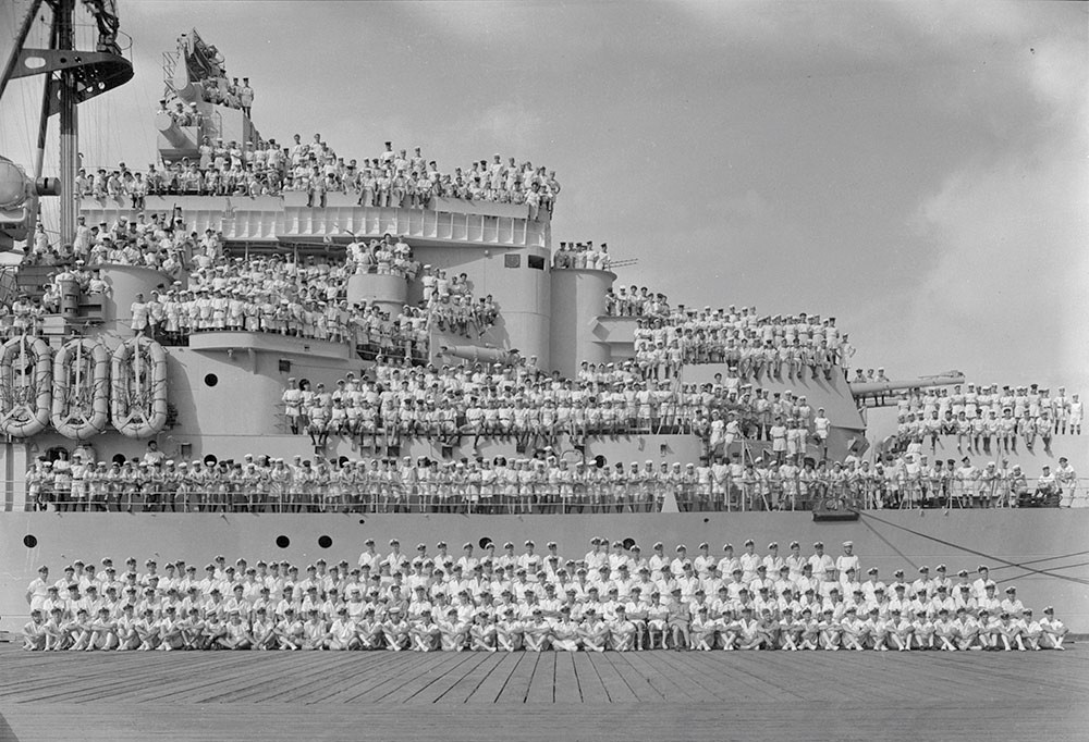 Ship’s company, HMCS Ontario (C32), Pearl Harbor, Hawaii, 21 November 1945.