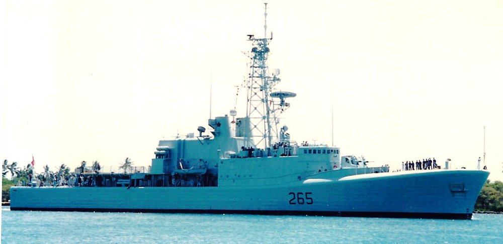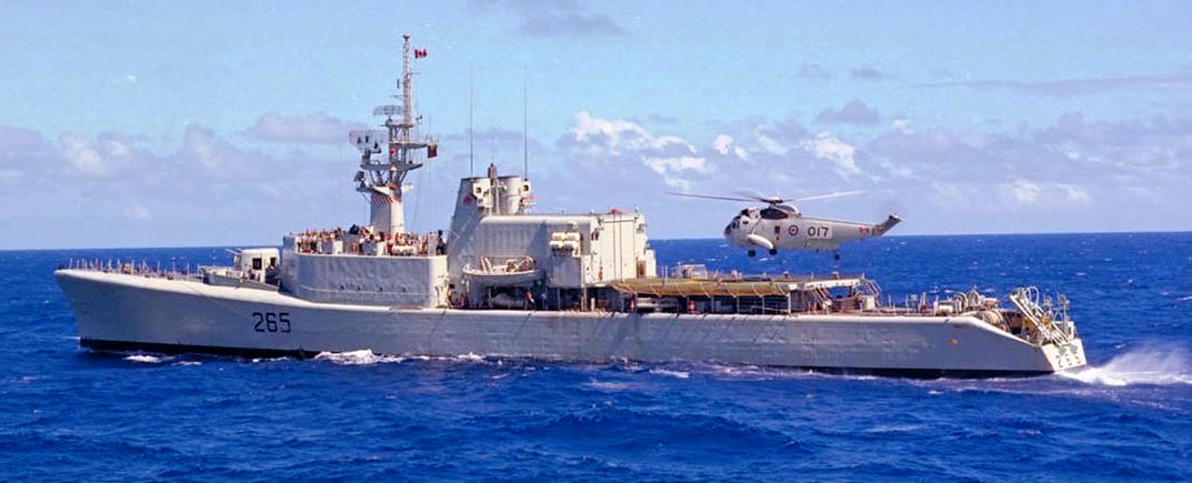 HMCS Annapolis (DDH 265).  Built at Halifax Shipyards Ltd., HMCS Annapolis was commissioned on 19 Dec 1964.  She was the twentieth and last of the Cadillacs.  HMCS Annapolis served most of her career with the RCN on the east coast.  On 27 Jul 1970, along with HMCS Skeena and HMCS Protecteur, she departed Halifax to celebrate Manitoba’s Centennial with visits to Fort Churchill, Rankin Inlet, Chesterfield Inlet and Wakeham Bay.  In June 1974, while flagship of SNFL, HMCS Annapolis went to the aid of a Sea King helicopter which had lost an engine and ditched.  After rescuing its crew, HMCS Annapolis recovered the helicopter and loaded it onto a barge and towed it to Den Helder, there bringing it onboard for return to Halifax.  On 14 Aug 1989, HMCS Annapolis left Halifax for Esquimalt where she served primarily as a training ship.  From 3 Jun to 7 Jun 1990, HMCS Kootenay, HMCS Annapolis, HMCS Huron had a port visit at Vladivostok, Russia.  On 10 Mar 1994, HMCS Annapolis departed Esquimalt to participate in Operation Forward Action, Haiti.  Arriving on station on 25 Mar 1994; she departed the Op Area on 23 Apr 1994.  HMCS Annapolis was decommissioned from the RCN on 15 Nov 1996 and placed in reserve.  She was paid off in 1998 and stripped of all weapons and sensors before being laid up at CFB Esquimalt.  HMCS Annapolis was sold to the Artificial Reef Society of BC in 2008 and was sunk as an artificial reef near Gambier Island, BC, on 4 Apr 2015.