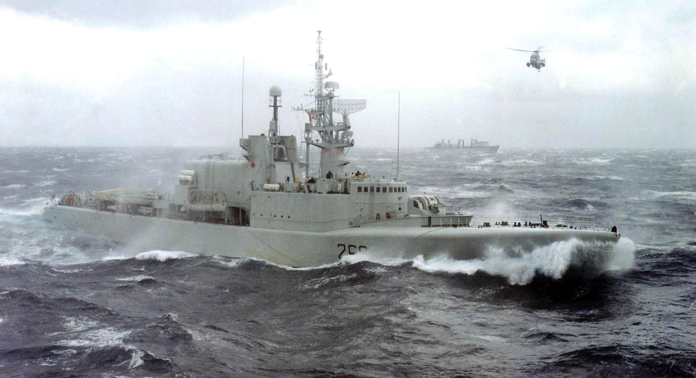On 27 Jun 1983, she was paid off for her DELEX refit at Davie Shipbuilding & Repairing Co., Ltd., Lauzon, Quebec.  She was re-commissioned on 22 Aug 1984.  On 28 Apr 1985 HMCS Nipigon provided SAR assistance to fishing vessel Lady Marjorie.  The crew was rescued and the vessel was sunk by gunfire from HMCS Nipigon.  The Crown was subsequently sued by vessel owners.  An out of court settlement was reached.  On 22 Feb 1987 HMCS Nipigon’s helicopter assisted in the rescue of the crew from the burning tug Gulf Gale off Cabo Rojo, Puerto Rico.  On 19 May 1993 HMCS Nipigon departed Halifax with HMNZS Endeavour and HMNZS Canterbury for the 50th anniversary of the Battle of the Atlantic ceremonies off the coast of Wales and Liverpool.  On 14 Jun 1995 HMCS Nipigon‘s crew members along with DFO enforcement officers boarded the Spanish trawler Patricia Nores and found 11 tonnes of turbot in excess of amounts recorded in the ship’s log.