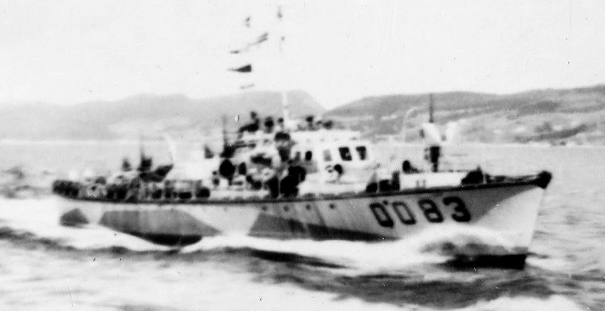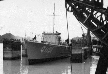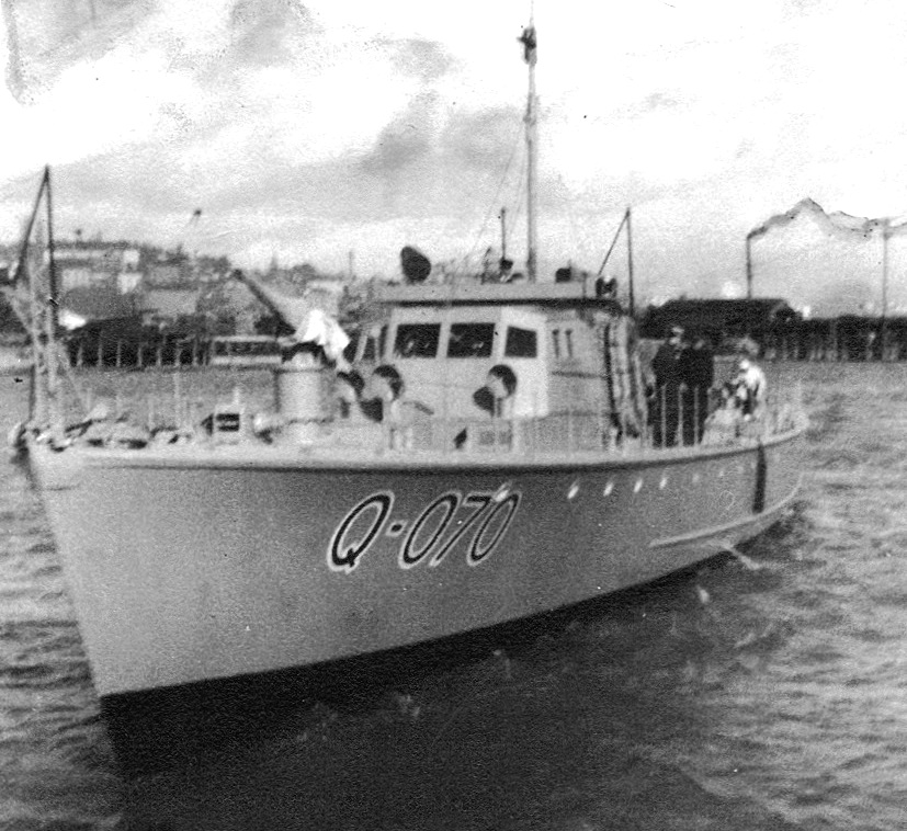 ML Q052, delivered to the RCN on 31 Oct 1941. Q052 served with the free French Navy of St. Pierre et Miquelon on the South Coast of Newfoundland from 15 Jan 1943 until the end of the war. After the war, Q052 was sold to General J. C. Escobar, Montreal and was later renamed Cyrius and La Marie-Jo.