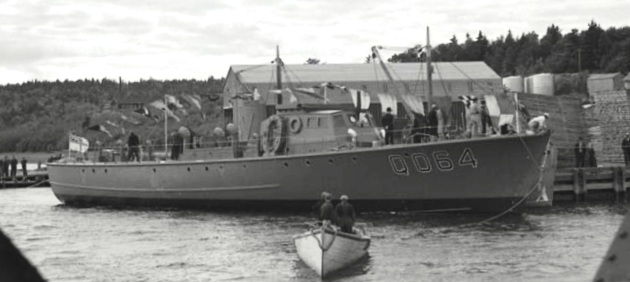 ML Q064. Built by LeBlanc Shipbuilding Co., J.H., Weymouth, NS, she was delivered to the RCN on 18 Apr 1942. While she flew the White Ensign, she was not commissioned into the RCN but instead was listed as a tender to HMCS Sambro, the depot ship for escorts (tenders were not commissioned vessels). In Mar 1943, Q064 rescued the flight crew of a Catalina flying boat that had crashed one mile offshore and was on fire. In Mar 1944 and Jan 1945, ML Q064 was part of the 72 ML Flotilla, Halifax M.L. Force. On 6 Mar 1944, her CO, Lt Jarvis was listed as the SO of the 72 ML Flotilla. In 1947, she was sold and renamed Six-Four. She foundered in 1952.