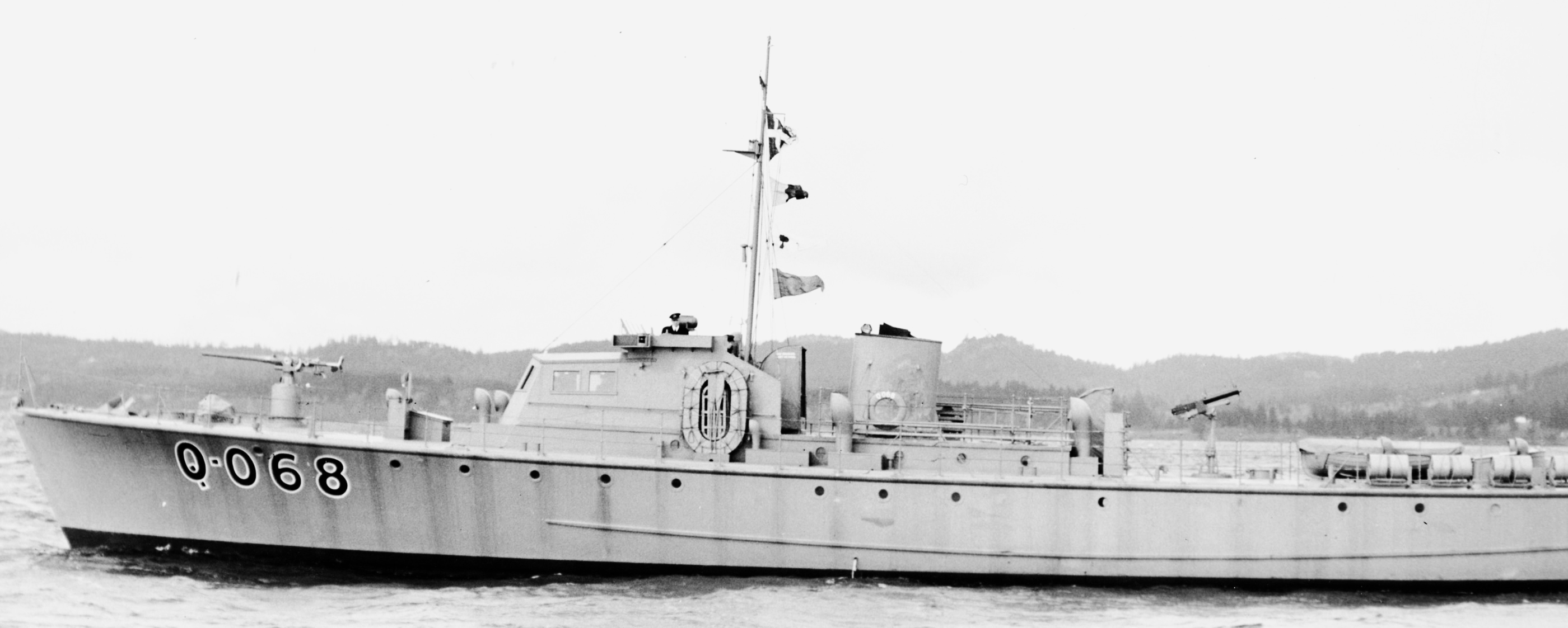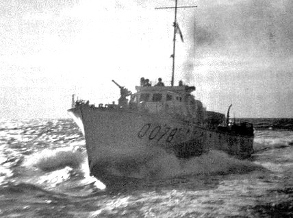 HMCS Q-068, a Fairmile Type B Motor Launch, 45 degrees on the bow, 23 March 1942.
