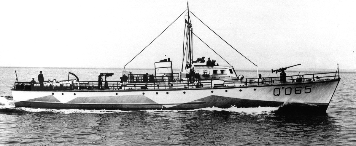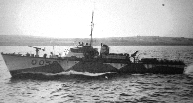 ML Q050 Fairmile Type B Motor Launch. The large black flag indicates Q050 is conducting radio asdic contact training during anti-submarine exercises in May 1943.