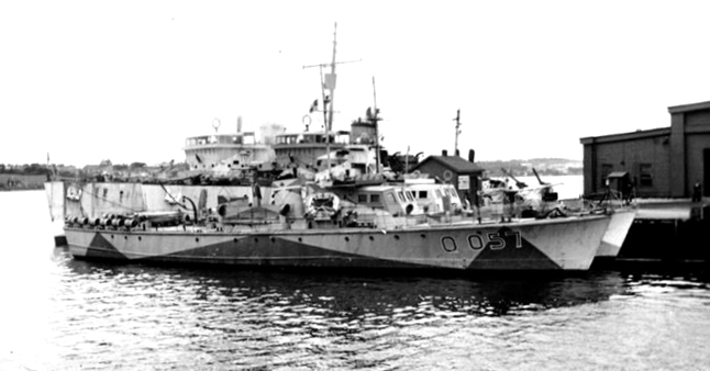 ML Q065. Built by LeBlanc Shipbuilding Co., J.H., Weymouth, NS, she was delivered to the RCN on 15 May 1942. While she flew the White Ensign, she was not commissioned into the RCN but instead was listed as a tender to HMCS Sambro, the depot ship for escorts (tenders were not commissioned vessels). Q065 was a “B” Type ML, Displacement 79 tons, Length: 112 ft, Beam, 17.9 ft, Draught: 4.9 ft, Speed: 20 kts, Complement: 3 officers, 14 men, Armament: 3-20mm. In Jan 1944 and Mar 1945, Q065 was listed as part of the 72nd ML Flotilla, Halifax M.L. Force. She was sold in 1946 to Eric W. Phillips, Toronto and renamed the Audrey A and then Nadine II. She caught fire in 1978 and was destroyed.