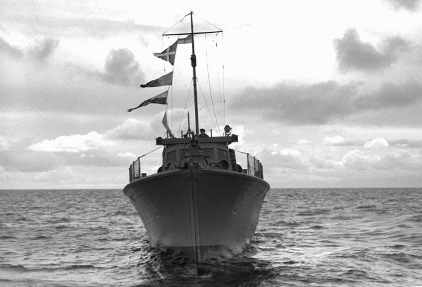 ML Q050 off St-Margaret’s Bay, Nova Scotia, Spring 1943. The Fairmile was one of the smallest warships used by the RCN. Her wooden hull measured 34 metres; propelled by two 630hp-gas engines she could reach a speed of 22 knots. The Fairmile was commonly armed with a three-pound (1.36 kg) gun at the fore and .303-in machine-guns at the aft, although this varied. She carried some 20 depth charges. The RCN used flotillas of six Fairmiles for anti-submarine patrols in the Gulf of St. Lawrence and along the shores. Fairmiles were also used to supply arms to Greek partisans conducting resistance warfare on islands under German control.