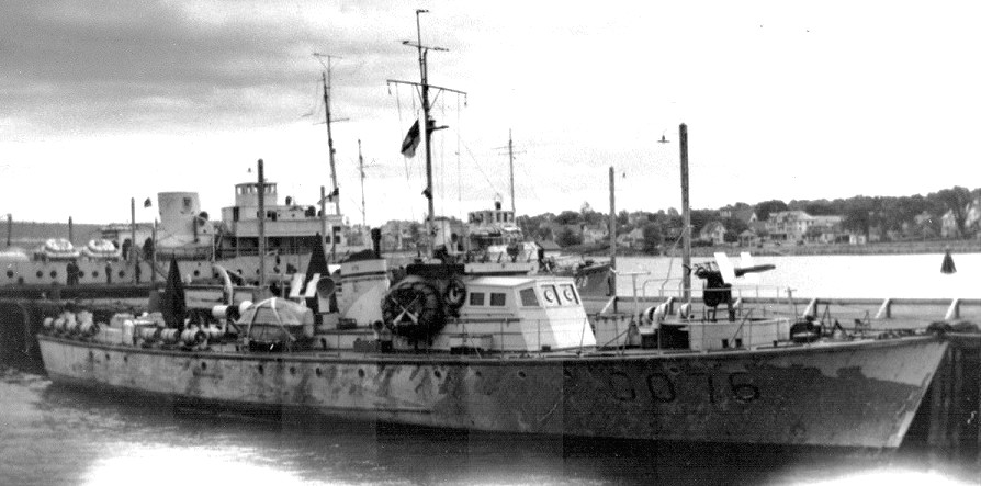 ML Q075. Built by Minett-Shields Ltd., Bracebridge, Ontario, she was delivered to the RCN on 22 Jun 1942. While she flew the White Ensign, she was not commissioned into the RCN but instead was listed as a tender to HMCS Sambro, the depot ship for escorts (tenders were not commissioned vessels). Q075 was a “B” Type ML, Displacement: 79 tons, Length: 112 ft, Beam: 17.9 ft, Draught: 4.9 ft, Speed: 20 kts, Complement: 3 officers, 14 men, Armament: 3-20mm. In Jan 1944 and 1945, Q075 was listed as part of the 73rd ML Flotilla, Saint John, NB. After the war she was sold to ACME Boat and Salvage Company, New York, USA.