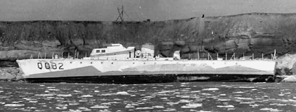 ML Q082. Built by Honey Harbour Nav. Co. Ltd., Midland, Ontario, she was delivered to the RCN on 27 May 1942. Q082 was a “B” Type ML. In Jan & Mar 1944, Q082 was listed as part of the 79th ML Flotilla, Halifax L.D. Force. She was removed from service after having caught fire in 1944.