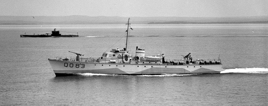 ML Q083. Built by LeBlanc Shipbuilding Co., J.H., Weymouth, NS, she was delivered to the RCN on 25 May 1942. Q083 was a “B” Type ML. In Apr 1944, Q083 was listed as part of the 79th ML Flotilla, Halifax L.D. Force. She was sold in 1945 to Lorne Johnson, Montague, Prince Edward Island and renamed Lazy Mariner.