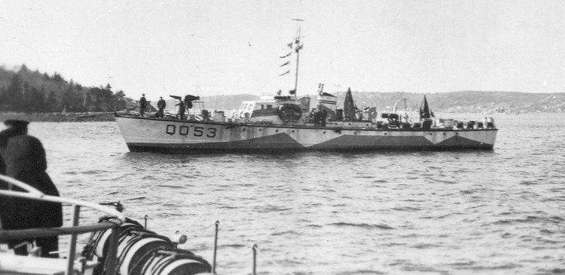 ML Q053 was delivered to the RCN on 17 Nov 1941. While she flew the White Ensign, she was not commissioned into the RCN but instead was listed as a tender to HMCS Sambro, the depot ship for escorts (tenders were not commissioned vessels). In Jun 1943, ML 053 distinguished herself by recovering, intact, two mines of a barrage laid by U-119 in the Halifax approaches. On 8 Jun 1943, Q053, following the minesweeper HMS Byms 989, at 1815hrs, she observed a floating mine. A tow line 90 yards long was attached to the mine and the mine was towed to Ketch Harbour. At 1930hrs the tow line was passed to a shore party and the mine was then hauled to the beach. At this point Lt George Henry Olaf Rundle, RCNR, assisted by OS John Gordon Lancien, RCNVR, removed the cover plate, the wiring was cut, and the detonator removed. At 2052hrs, once the mine was declared safe, the shore party returned and removed the mine & detonator. In Jan 1944, Q053 was listed as part of the 71st ML Flotilla, Halifax L.D. Force.