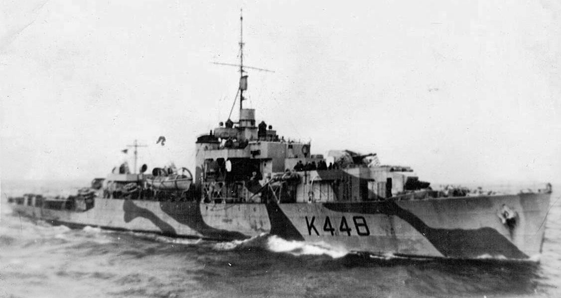 HMCS Orkney (K448) River class Frigate.  Originally to be named HMCS Yorkton to commemorate Yorkton, Saskatchewan., she was named HMCS Orkney to avoid confusion with the USS Yorktown what was already in commission.  Laid down in Esquimalt, she was built by Yarrows Ltd.  Commissioned on 14 Apr 1944, at Victoria, Orkney arrived at Halifax 8 Jun 1944.  After working up in Bermuda she returned to Halifax in Aug 1944 to join EG 16, but was transferred as Senior Officer’s ship to EG 25 at Londonderry, sailing late in Oct 1944 with eastbound convoy HX.317.  She remained on duty in UK waters until 13 Feb 1945 when she collided with SS Blairnevis which sank with no loss of life.  HMCS Orkney proceeded to Dunstaffnage, Scotland, for repairs.  At the time of the accident, HMCS Orkney was part of Escort Group 25, which was engaged in escorting merchant shipping into Liverpool.  The weather at the time of the accident was foul with heavy rain that further reduced visibility.  SS Blairnevis was a new merchant ship, loaded with valuable bauxite.  She had to be grounded to avoid her sinking and blocking the swept channel in the Mersey River estuary.  Following the collision, HMCS Orkney‘s repairs lasted until Apr 1945.  Following a week’s workups at Tobermory, HMCS Orkney returned briefly to ‘Derry, then sailed late in May 1945 for home and tropicalization refit at Louisbourg, NS.  This was completed on 20 Oct 1945, after which she served locally until paid off 22 Jan 1946, to reserve in Bedford Basin.  Following her service in the war, Orkney was disarmed and laid up in Bedford Basin.  She was purchased in early 1947, and moved to a ship breaker’s yard in Brooklyn, NY, where she was stripped down to the upper deck.  Refitted to carry as many  passengers as possible and remamed Violette, she joined the sixty-two other vessels operated by “Haganah” to smuggle illegal Jewish immigrants to Palestine.  With the creation of the state of Israel on 14 May 1948, Violette was was laid up.  In 1952, she was re-acquired by the Israeli Navy, and re-armed as a warship.  She was then re-commissioned as the Mitvach K28, and for some time afterward, with former HMCS Hallowell (Misnak) and HMCS Strathadam (Misgav), were the largest ships in the Israeli Navy.  In 1959, Mitvach was sold to the then- Royal Ceylon Navy and served as Mahasena until 1964 when she was paid off and sold to a Hong Kong ship breaker on 31 May 1964.