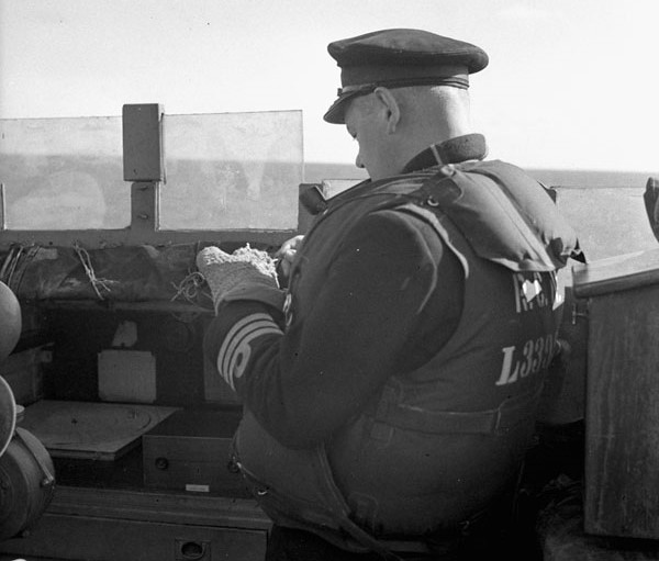 Signalman aboard the Fairmile motor launch Q078 of the Royal Canadian Navy at sea, 10 May 1943.