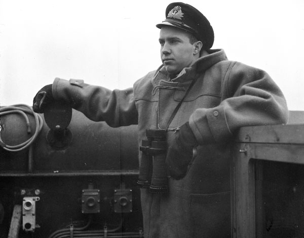 Lieutenant George Buckingham aboard HMCS Prince David off the coast of British Columbia, 20 December 1943.