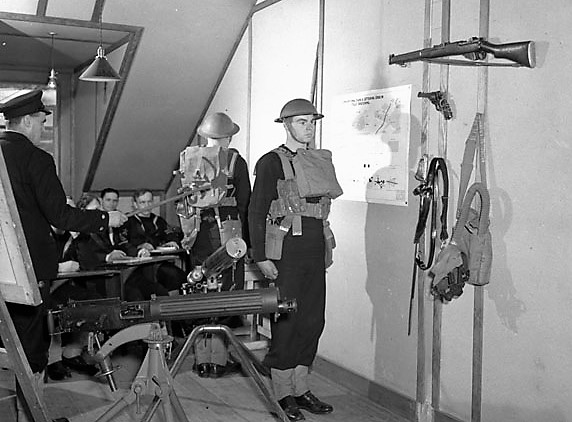 They appear to be armed with the “United States Rifle, cal .30, Model of 1917”, an American modification and production of the .303-inch (7.7 mm) Pattern 1914 Enfield (P14) rifle (listed in British Service as Rifle No. 3). These rifles were manufactured in the USA on British orders for the First World War, then were supplied to Britain and the Commonwealth under Lend-Lease in the Second World War. (Bob Cerovich)