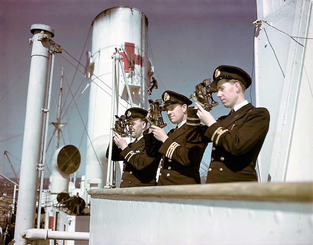 Hospital Ship Letitia, crew taking a sighting, c1943.