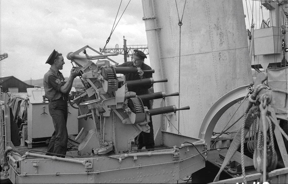 Quad 2-pounder anti-aircraft guns on HMCS Skeena, June 1940.