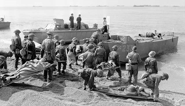Personnel of the Royal Canadian Army Medical Corps treating “casualties” during the final rehearsal for Operation JUBILEE, the raid on Dieppe. England, August 1942. Left is a landing craft personnel LCP , right is a landing craft assault. LCA.