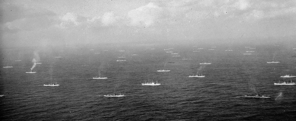 The RCN played a significant role in the Battle of the Atlantic.  Although the RCN was very small at the start of the war, by 1942 it was carrying out a major share of the defence of North American waters while escorting trans-oceanic convoy of merchant ships and fighting German U-boats.  By 1944, the RCN and RCAF had grown to the point where they were providing a significant contribution to our Allies in other theatres of the war.  At the same time, Canada’s Merchant Navy Veterans sailed at tremendous risk, often in highly inflammable tankers or in freighters loaded with ammunition. More than 25,000 merchant ship voyages were made from North America to Britain under RCN escort delivering roughly 165 million tonnes of cargo to sustain the UK.