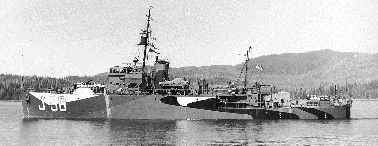 HMCS Caraquet (J38) (Bangor-class). Named for a New Brunswick bay, she was built for the RN but transferred to the RCN for manning and commissioned on 2 Apr 1942, at Vancouver. In May 1942 she joined Esquimalt Force and in Sep 1942 was transferred to Prince Rupert Force, but she returned to Esquimalt in Mar 1943, with order to proceed to the east coast. She left Esquimalt for Halifax on 17 Mar 1943 arriving on 2 May 1943 and was allocated to WLEF, transferring in Jul 1943 to Halifax Force and in Dec 1943 to Newfoundland Force. During this period she underwent a six-week refit at Baltimore, MD, from mid-Jul 1943. On 19 Feb 1944, with HMCS Cowichan, HMCS Malpeque and HMCS Vegreville, she left for Plymouth via the Azores, arriving on 13 Mar 1944. She was assigned to the 31st Minesweeping Flotilla for invasion duties and was present on D-Day. HMCS Caraquet proceeded to Canada at the end of Sep 1944 to refit at Lunenburg, returning to Plymouth in Mar 1945, for further mine-clearance work. She was paid off on 26 Sep 1945 and returned to the RN at Sheerness. In 1946 she was sold to the Portuguese Navy and renamed Almirante Lacerda. In 1975 she was sold to the navy of the Republic of Mozambique and remained in service till 1984.