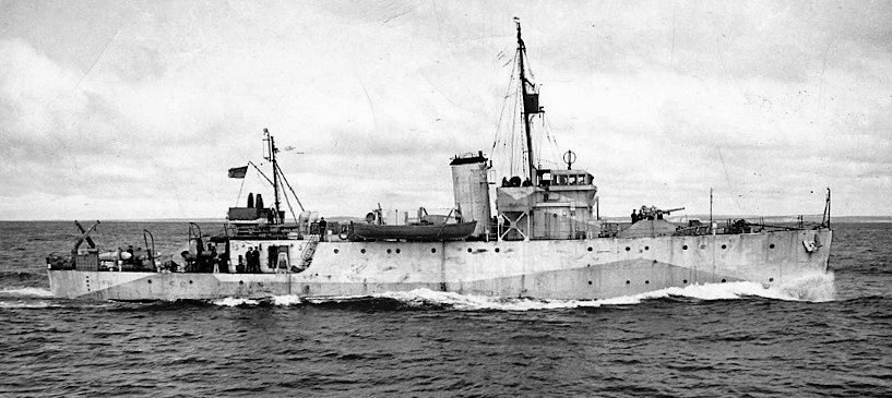 HMCS Grandmère (J258) (Bangor-class).  Built by Canadian Vickers Ltd., Montreal, Quebec.  HMCS Grandmere was commissioned at Montreal on 11 Dec 1941.  En route to Halifax she broke down in the Gulf of St. Lawrence on 21 Dec 1941, and was towed to Sydney by HMCS Kamsack.  Later that month, while alongside at Sydney undergoing repairs, she suffered serious damage to her No.2 boiler, and was taken to Pictou for repairs, which were not completed until May 1942.  She finally arrived at Halifax, her original destination, on 5 May 1942.  She served for varying periods with WLEF, Sydney Force, Halifax Force, and Halifax Local Defence Force.  On 14 Oct 1942, while with Sydney Force, she rescued 101 survivors of the passenger ferry Caribou, torpedoed in the Cabot Strait – 126 passengers and crew of the Caribou perished.  In July 1943, she had a seven-week refit at Louisbourg and underwent a second major refit at Sydney and Halifax in Sep 1944, following which she worked up in Bermuda in Feb 1945.  The ship was paid off at Sydney on 23 Oct 1945, and placed in reserve at Shelburne.  Sold in 1947, she operated as the yacht Elda.  In 1951, she was converted to a cargo vessel, 664 gt, and renamed Jack’s Bay.  She operated under British registry out of Nassau, Bahamas ports between Florida and Cuba.  In 1961 she was renamed Proton.  In Oct 1968, she was broken up at Pinto Island Metals Co., Mobile, Alabama.