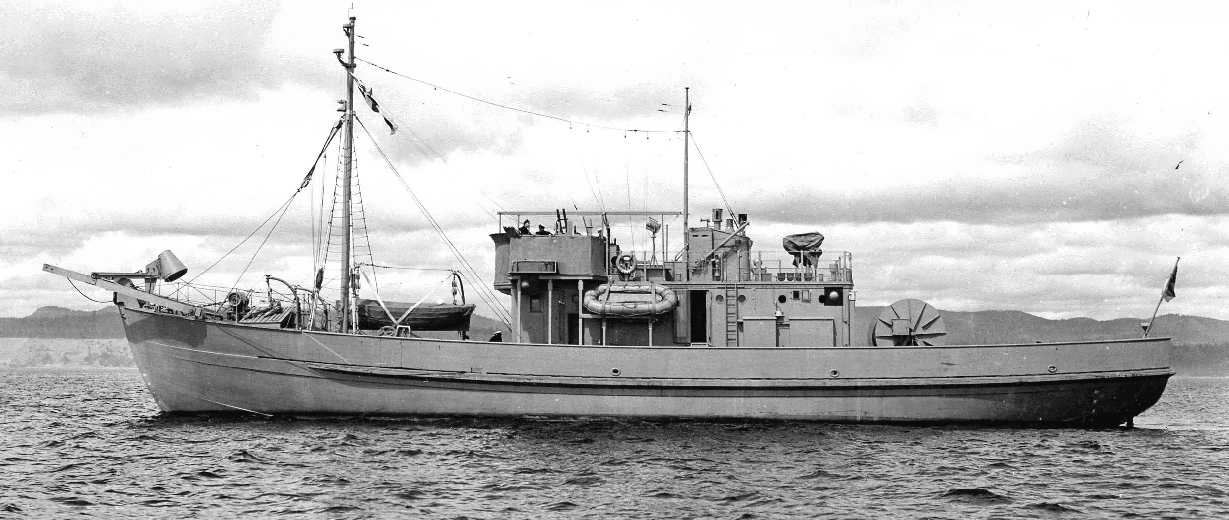 HMCS Coquitlam (J364) (Llewellyn-class). Built at Newcastle Shipbuilding Co. Ltd., Nanaimo, BC, she was commission at Nanaimo on 25 Jul 1944. She was employed out of Esquimalt on Esquimalt and Prince Rupert Force until the end of the war. Coquitlam was sold for civilian use in 1946 and re-named Wilcox. She ran aground at Carleton Point, Anticosti Island in Jun 1954.