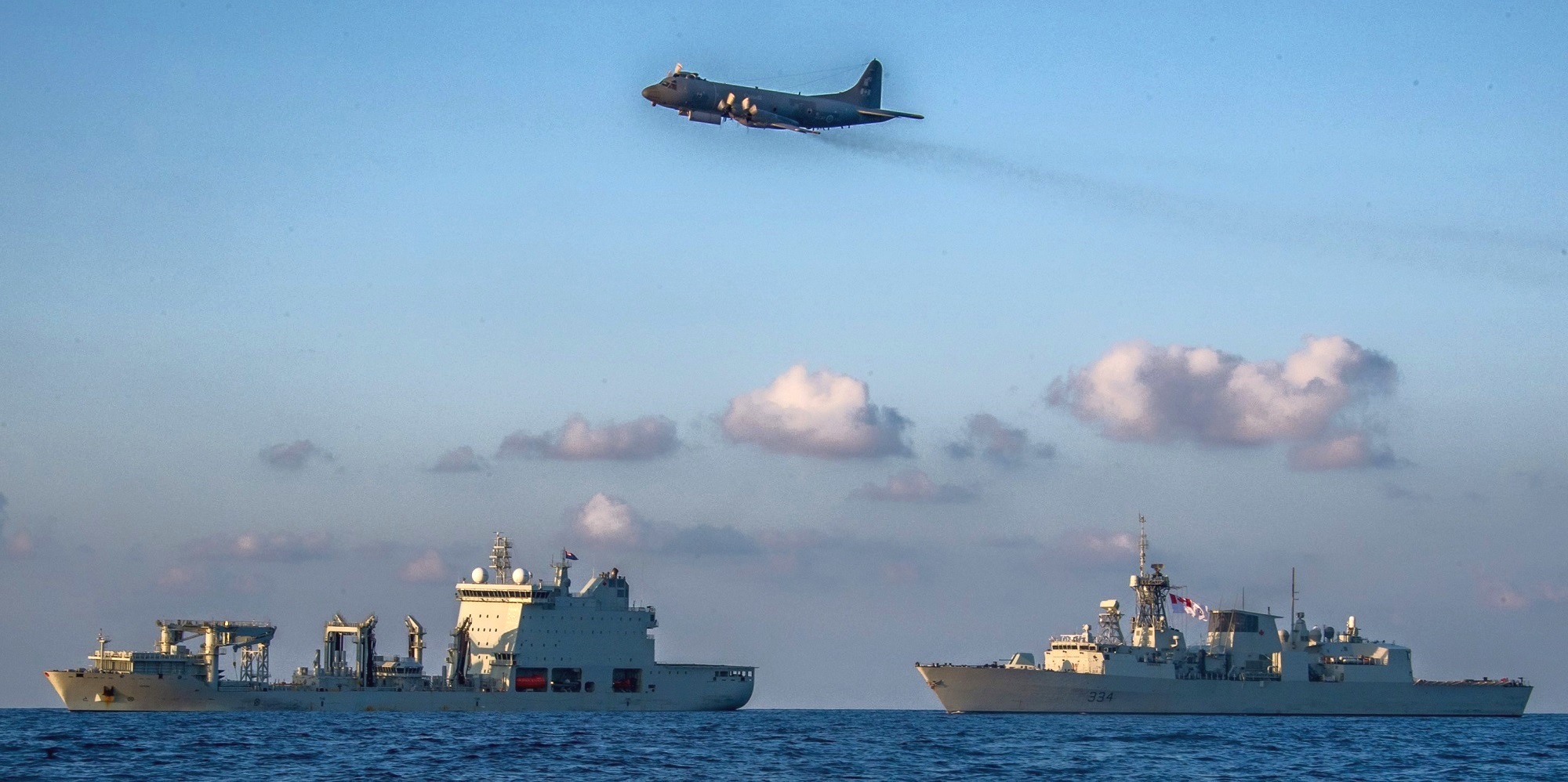Working with the Canadian led Combined Task Force 150, HMCS Regina and NRU Asterix are operating alongside a Lockheed CP-140M Aurora from 19 Wing Comox on Op Artemis, the CAF contribution to counter-terrorism and maritime security operations in the Arabian Sea.
