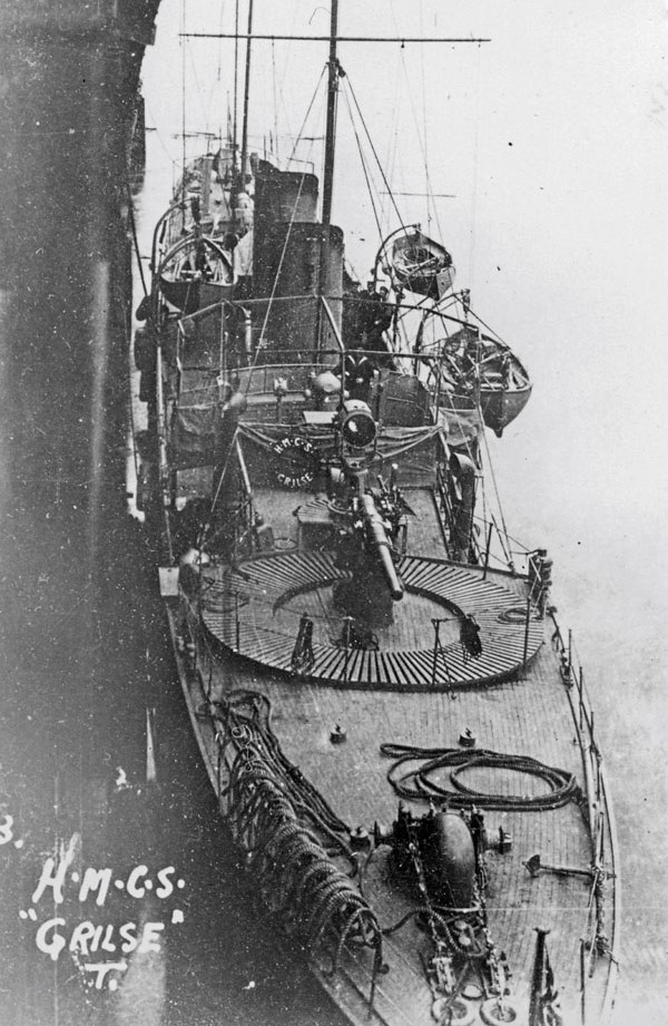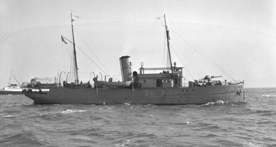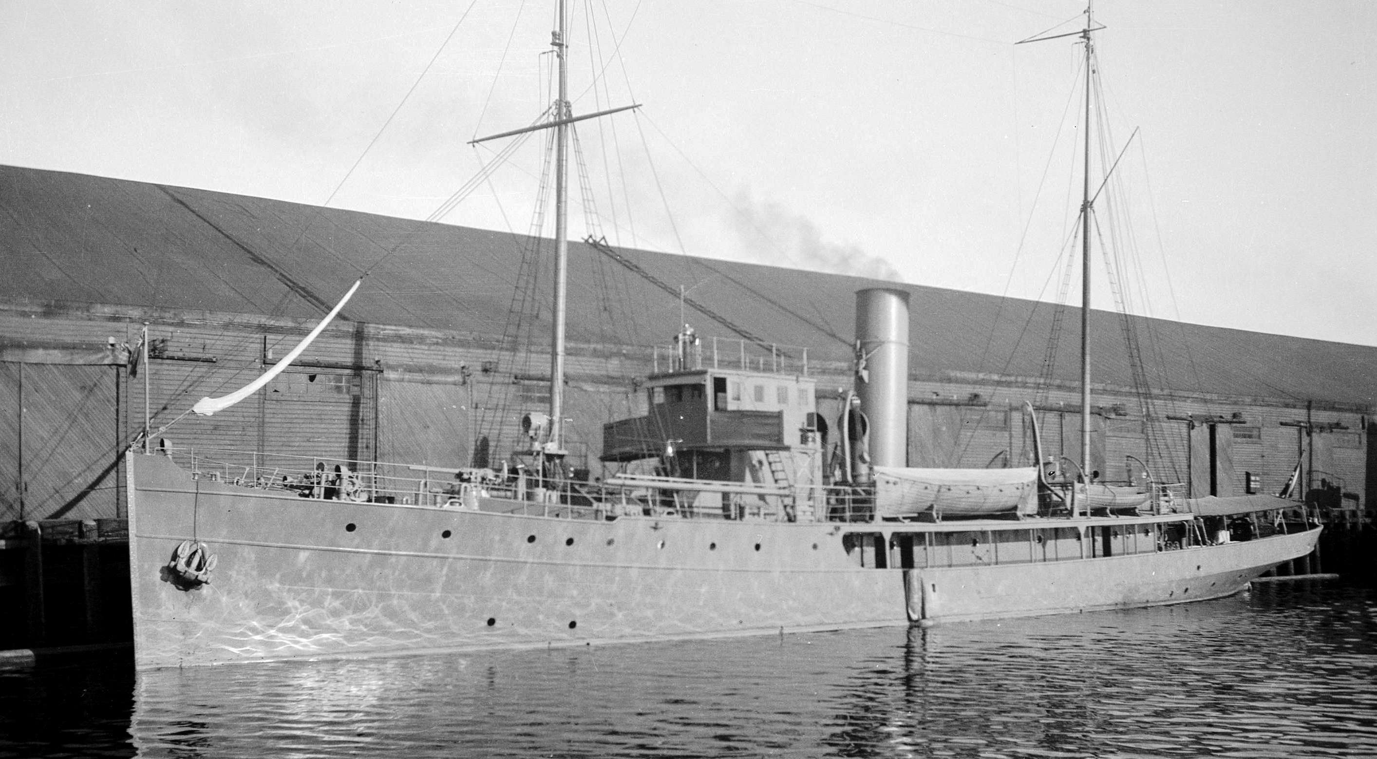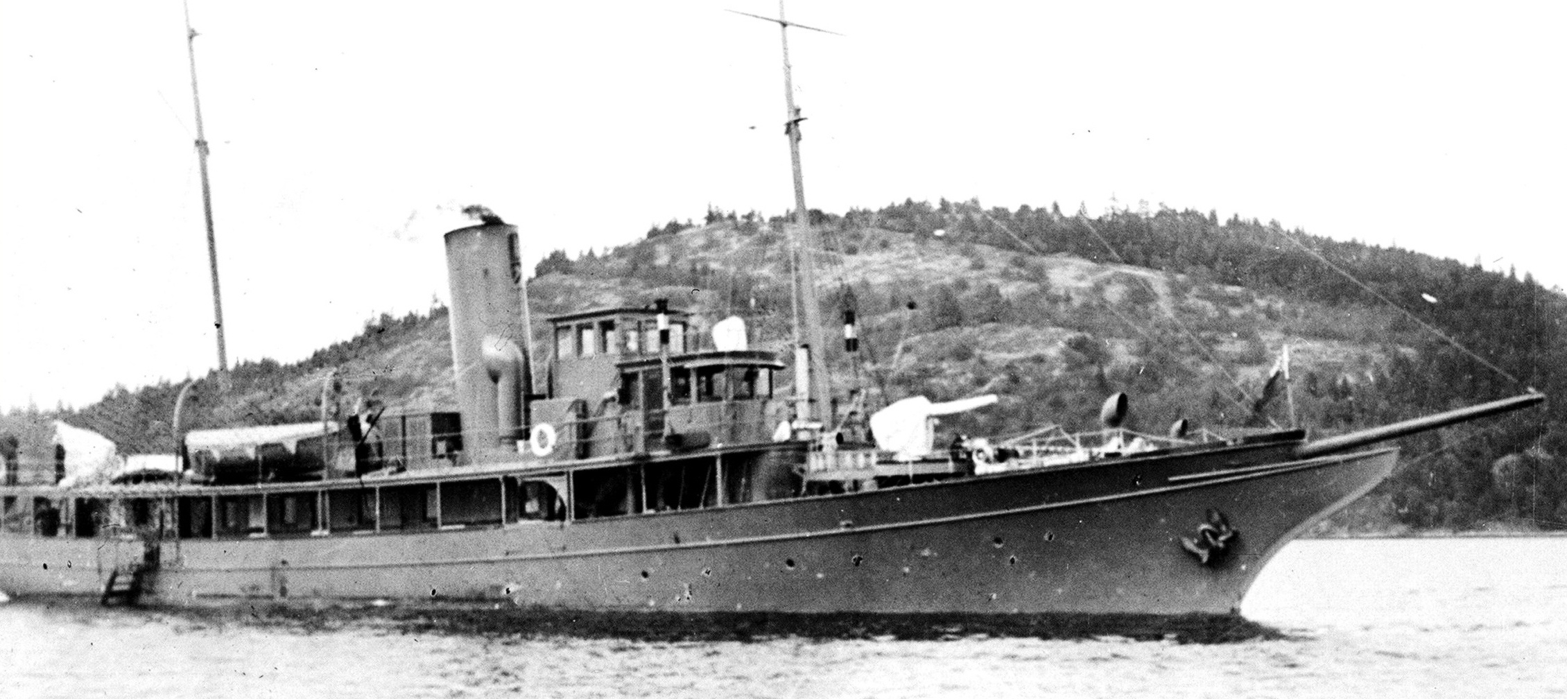 HMCS Grilse (converted from civilian use), commissioned patrol boat of the Royal Canadian Navy during the First World War, shown here in 1916.