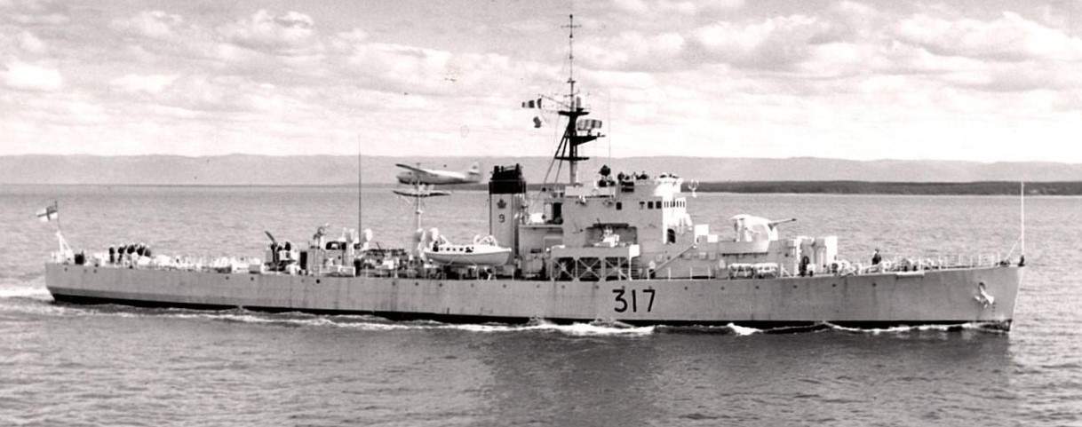 HMCS Cap de la Madeleine (317) Prestonian Class Frigate. HMCS Cap de la Madeleine (K663), was built at Quebec city, she was commissioned there on 30 Sep 1944. She arrived at Halifax 20 Oct 1944, and soon afterward sailed for Bermuda to work up. Returning in Dec 1944, she was allocated to EG C-7, MOEF, based at St. John’s. She left that port 28 Dec 1944, to accompany convoy HX.328 eastward, but was detached on 03 Jan 1945 to the westbound convoy ONS.39, as she had to return for repairs. These were carried out successively at St. John’s, Halifax and Quebec, and completed on 07 May 1945. She then began tropicalization refit at Lauzon, but this was cancelled in Aug 1945 owing to termination of hostilities, and the ship was paid off 25 Nov 1945 at Shelburne, NS. She was sold to Marine Industries Ltd., but later re-acquired by the RCN and converted to a Prestonian class unit (317). Re-commissioned on 7 Dec 1954, she served on the east coast until paid off on 15 May 1965. She was broken up the following year at La Spezia, Italy.