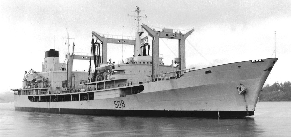 HMCS Provider 508.  Built by Davie Shipbuilding & Repairing Co. Ltd., Lauzon, Quebec, she was commissioned there on 28 Sep 1963.  She was the first Operational Support ship in the RCN and was designed with the capacity for the stowage of fuel, ammunition, supplies, provisions (dry and refrigerated) and replacement helicopters.  She was also designed to transfer supplies and personnel underway and provided support to operational forces at sea.  At the time, she was the largest ship built in Canada for the RCN. She had 26 fuel cargo tanks which held approximately 14,000 tons of FFO, 1,500 tons of diesel and 900 tons of aviation gas (JP5) along with 430 tons of ammunition, provisions and spare parts.  HMCS Provider had the capability of replenished and refueling up to 4000 gals/min at 18 plus knots.  Late in 1969, with the arrival of the two follow-on AORs, HMCS Preserver and HMCS Protecteur, she was transferred to the west coast.  On 4 May 1970, HMCS Provider 508, HMCS Mackenzie 261, HMCS Yukon 263 and HMCS Terra Nova 259 departed Esquimalt for a Far East cruise.  On 8 May 1986, HMCS Provider 508, HMCS Restigouche 257, HMCS Terra Nova 259 and HMCS Kootenay 258, departed Esquimalt for Exercise RIMPAC 86 and returned on 21 Jun 1986.  In the spring of 1990 she took part in the Pacific Rim countries’ exercise RIMPAC 90, along with units of the 2nd and 4th Destroyer Squadrons, which afterward visited Vladivostok, the first western warships to do so since 1939.  Afterward, en route to visit Manila, she rescued a large number of Vietnamese boat people that had spent nine days without food or water after their boat had broken down.  In late 1993 and early 1994 she took part in the UN embargo of Haiti.  She returned to Halifax in June 1996.  The ship was paid off 24 June 1998, two years later than originally planned, and remained in Halifax Harbour until 2002 while she awaited auction.  She was sold to Greek interests and on 26 Jul 2002 left Halifax under tow for Greece, to become a water storage vessel.  The following year she was towed to Turkey and broken up.