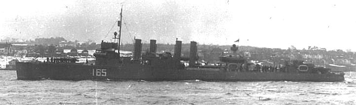 HMCS St. Clair (I65) (Clemson class); previously USS Williams (DD-108), entering service with the USN in 1919.  Following a brief stint in active service, the ship was laid up for 17 years before being transferred to the RCN.  It survived the war, but was scrapped in 1946.