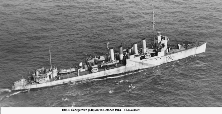 HMCS Georgetown (I40), deployed with the Western Local Escort Force in Nov 1943, paid off Dec 1944.