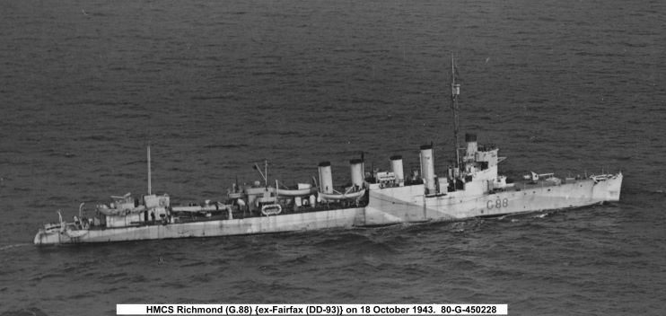 HMCS Richmond (G88). July to December 1943, convoy duties based out of Halifax.