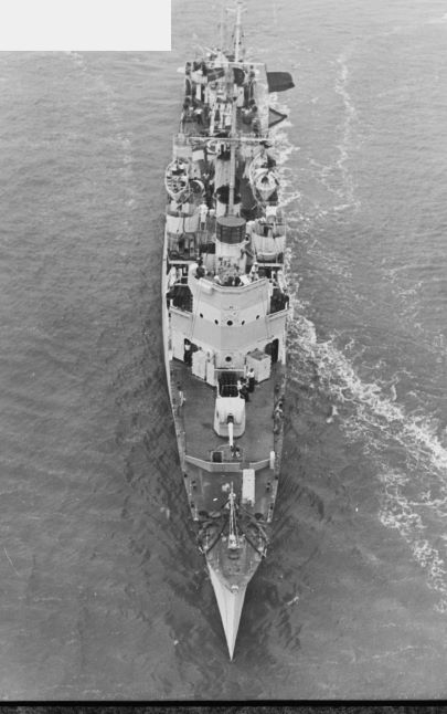 HMCS Niagara (I57) (Clemson class) viewed from the air during the capture of U-570.